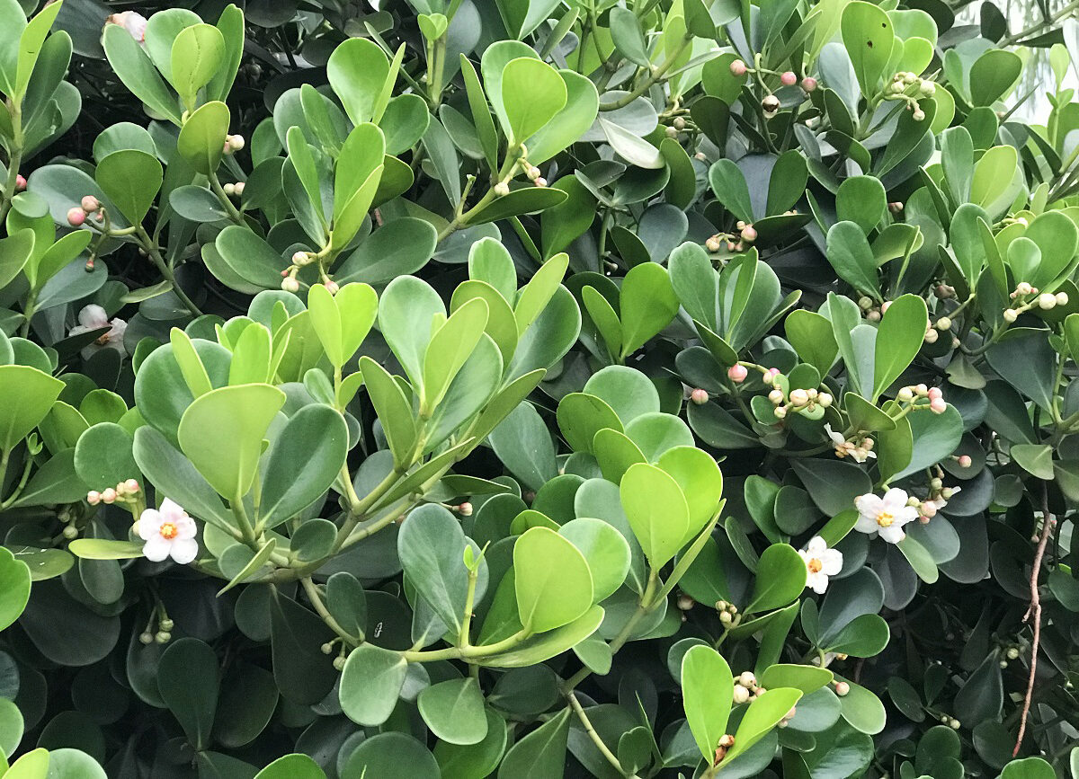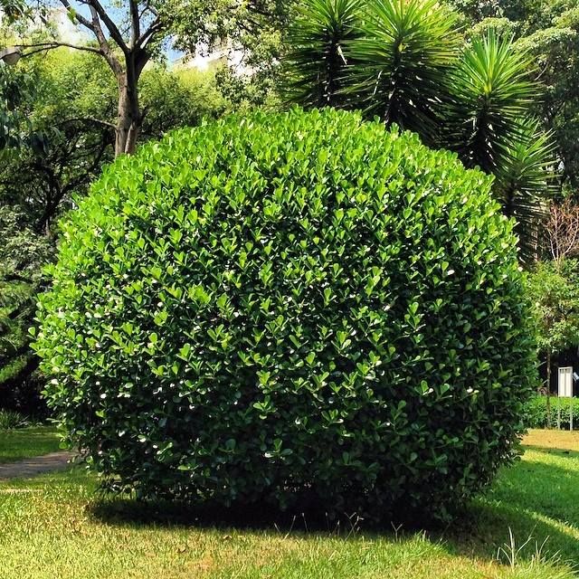 Descrição: Sua folhagem é bastante ornamental, apresentando folhas rígidas, brilhantes em forma de gota. Ela tem uma característica interessante é capaz de absorver gás carbônico durante a noite, tendo assim uma fotossíntese mais eficiente e uma grande proteção contra a desidratação. As flores são pequenas, brancas e a espécie é dióica, isto é, apresenta plantas macho e fêmea separadas. A floração ocorre na primavera e verão. Os frutos pequenos atraem os passarinhos. Tem ampla utilização paisagística, sendo excelente para a implantação de cercas vivas e renques rústicos e resistentes, principalmente no litoral, onde outras plantas encontram dificuldade em se adaptar. Também pode ser plantada em vasos em terraços ou ambientes internos, além de arbustos informais isolados ou em grupos no jardim.