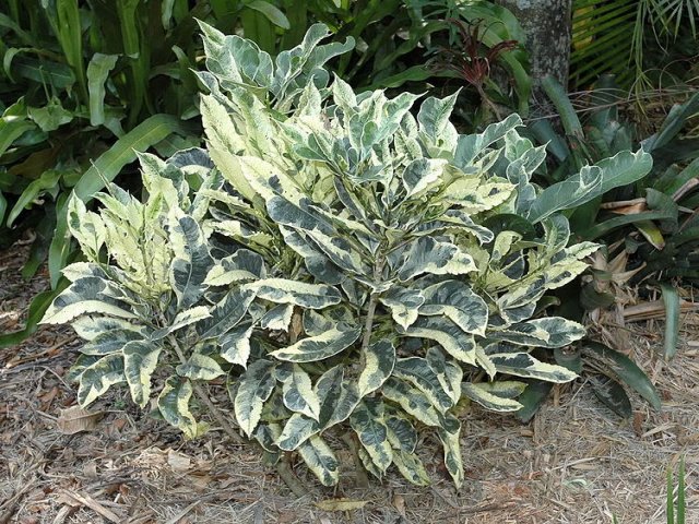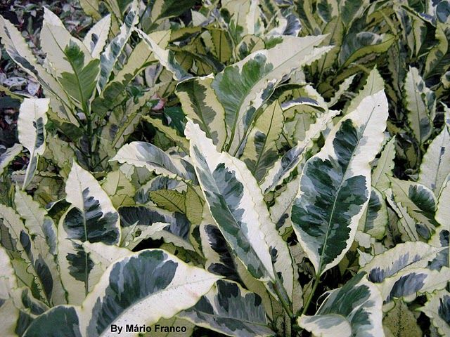 Descrição: O cróton é uma planta arbustiva de folhagem muito exuberante. Ele apresenta caule de textura semi-lenhosa a lenhosa e seiva leitosa tóxica. Suas folhas são coriáceas e brilhantes e podem ser afiladas, lobadas, ovaladas ou retorcidas, de tamanhos variados. No entanto o que mais chama a atenção nesta planta é o colorido de suas folhas, que se mostram mescladas de vermelho, roxo, rosa, branco, amarelo, verde ou laranja, nas mais variadas combinações. As manchas coloridas podem ser simplesmente pintalgadas, ou cobrirem as bordas, o centro e as nervuras das folhas. As flores têm pouca importância ornamental.