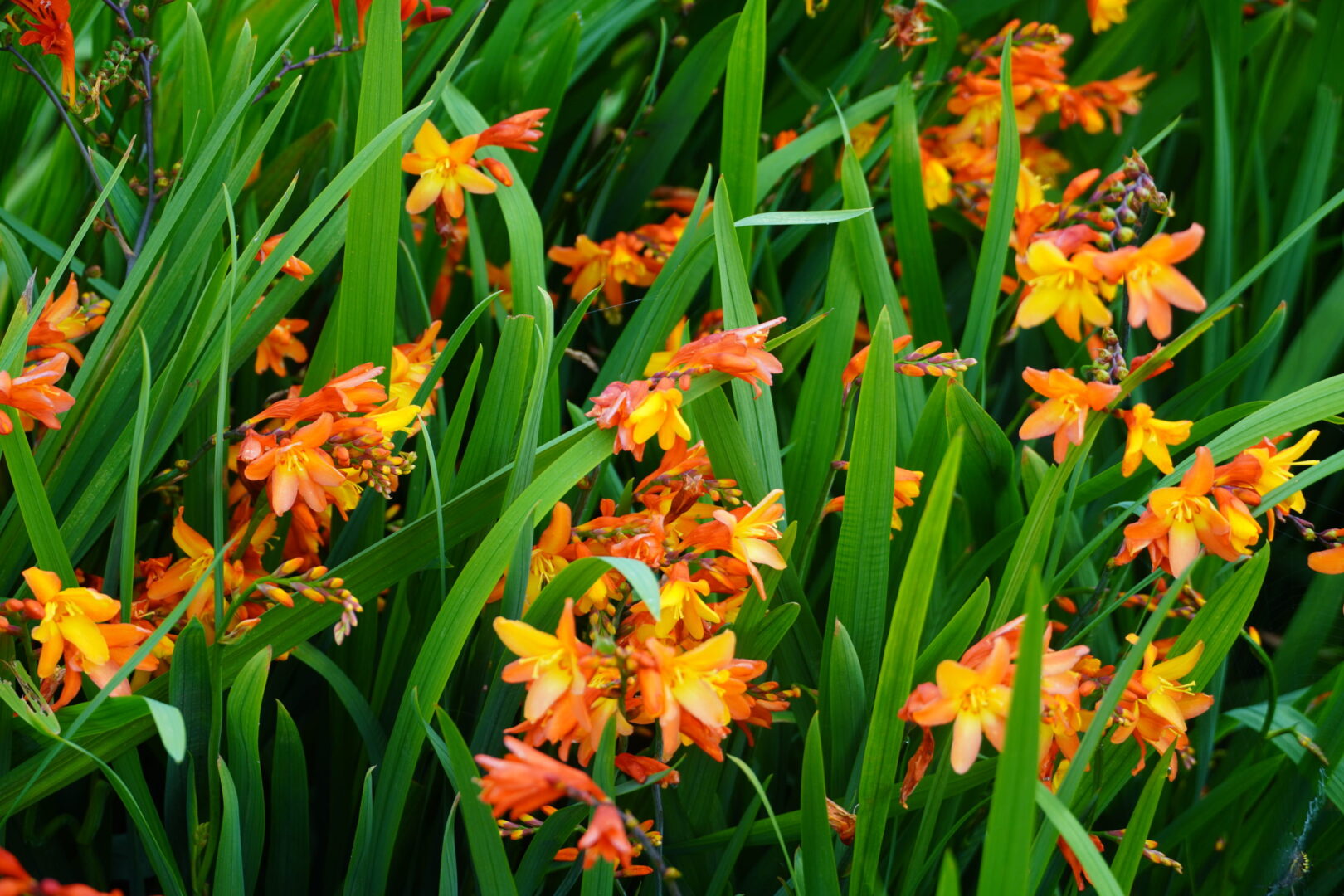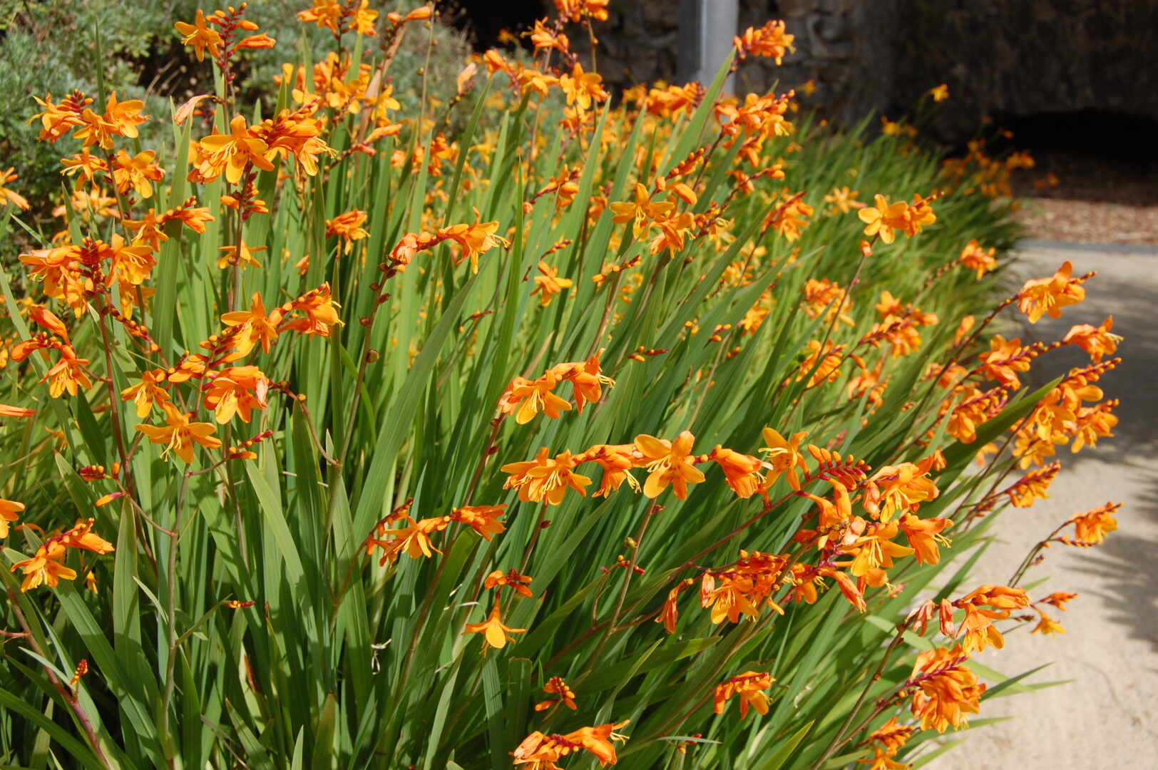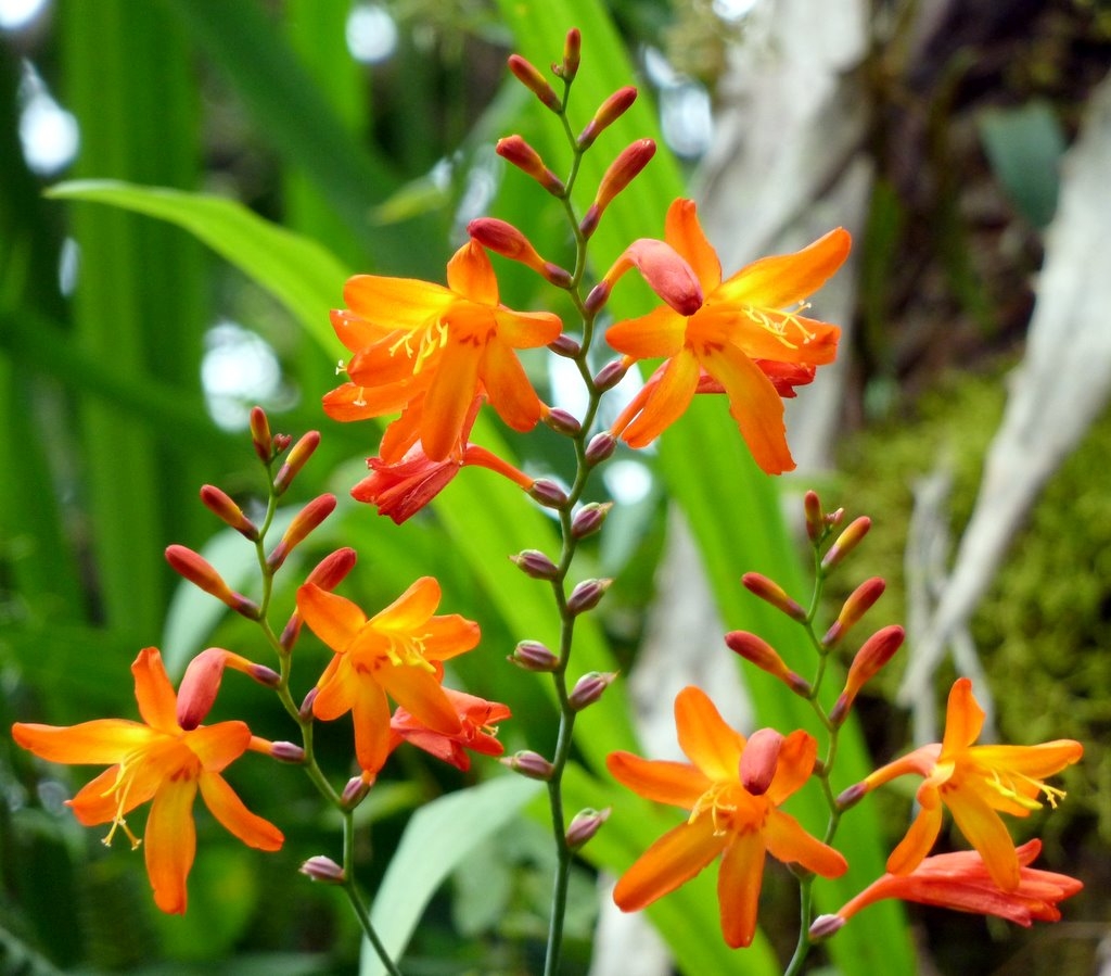 Descrição: A Tritônia é uma hibridação de Crocosmia pottsii com Crocosmia aurea, ambas originárias da África do Sul apresenta inflorescências longas, com flores pequenas de coloração vermelho-alaranjadas ou amarelas. A folhagem longa e verde opaca é semelhante às da palma-de-santa-rita (Gladiolus x hortulanus). As flores se formam principalmente no verão. Por ser uma planta perene produtora de bulbos (cormos), a tritônia é uma florífera para ser utilizada em canteiros e bordaduras de baixa manutenção. Apenas com adubações periódicas. Pode ser cultivada em composições, maciços ou como bordadura. Devem ser plantadas a pleno sol ou meia-sombra, em solo drenável, composto de terra de jardim e terra vegetal, com regas regulares. Aprecia o frio subtropical. Multiplica-se por divisão dos bulbilhos que se formam entorno e abaixo do bulbo principal.