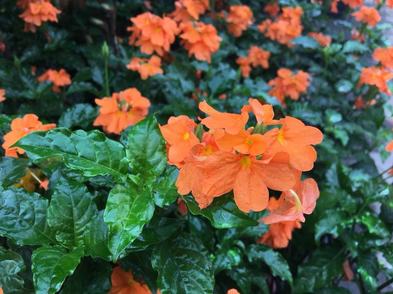 Descrição: A crossandra é uma planta florÃfera, perene, ereta, de textura herbácea e porte arbustivo. Suas folhas são lanceoladas, opostas, glabras, com margens por vezes onduladas e de um verde intenso e brilhante. As flores surgem no outono e inverno, em longas inflorescências do tipo espiga, eretas, verdes e podem ser axilares ou terminais. O florescimento se inicia no ápice da inflorescência, com poucas flores desabrochando por vez. As flores são assimétricas, porém muito vistosas. Elas se apresentam em diferentes tonalidades de amarelo, salmão, rosa, laranja e até em um delicado tom de azul claro, de acordo com a cultivar. Deve ser cultivada sob sol pleno ou meia sombra, em solo fértil, permeável, enriquecido com matéria orgânica e irrigado periodicamente. Mesmo tolerando o sol pleno, aprecia mais a meia-sombra ou a luz filtrada. Apesar de perene, o florescimento e o vigor da planta decaem com a idade e é recomendável renovar os canteiros com mudas jovens a cada 3 ou 4 anos. As podas, realizadas após o florescimento, renovam a folhagem e dão o formato desejado ao arbusto.