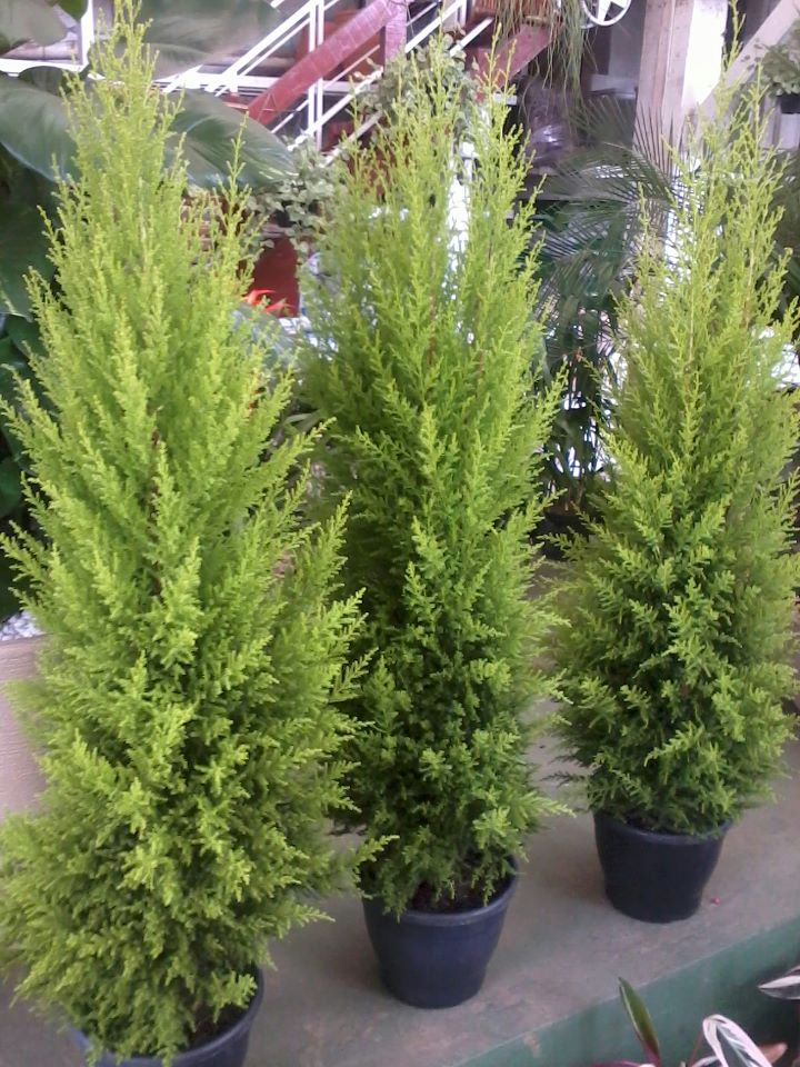 Descrição: Tuia Holandesa – Cupressus macrocarpa, também conhecida como Cipreste-de-monterei, Cipreste-da-califórnia e Tuia-limão, é uma conífera muito parecida com os pinheiros, um arbusto, pertence à família Cupressaceae, nativo da América do Norte, perene, muito ornamental, possui crescimento muito rápido. Folhas compostas de vários filamentos formados por pequenas escamas verde amarelada, possui um suave odor de limão ao ser tocada. Coníferas são plantas conhecidas como “gimnospermas”. Não produzem flores verdadeiras, mas sim espigas (estróbilos). Frutos de formato cônico, apresentando sementes em espiral, abertas e desprotegidas, mais conhecidos como “pinhas”. Usada na decoração de jardins, tanto isolada como em conjunto formando maciços. Também muito cultivada em vasos, principalmente como pinheiro de Natal.