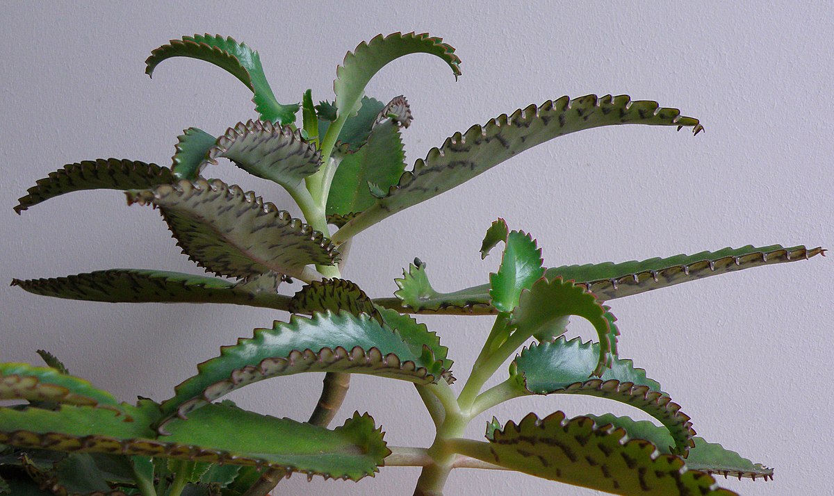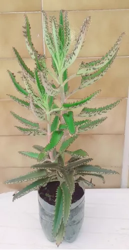 Descrição: Mãe-de-milhares, também conhecida como aranto, é uma planta suculenta, que chama a atenção por seu efeito ornamental e valor medicinal. Ela produz centenas de pequenos brotos ao longo da borda das folhas, que ao se desprenderem, facilmente se desenvolvem em novas plantas. Possui caule ereto que pode atingir até 1 metro de altura. Suas folhas são opostas, estreitas, pontiagudas, serrilhadas, suculentas, de formato oblongo a lanceolado. A cor das folhas pode variar bastante, entre o verde, o creme e o cinza na face superior e uma quantidade maior ou menor de manchas roxas na face inferior.