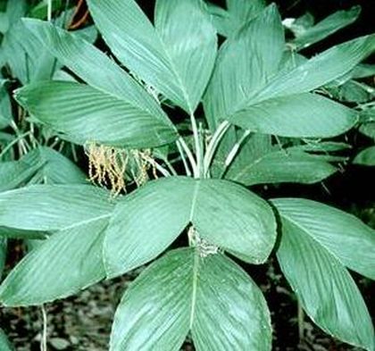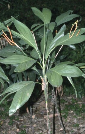 Descrição: Caule solitário . Folhas em pequeno número cerca de 45cm de comprimento, bífidas, as duas divisões formando em V invertido.