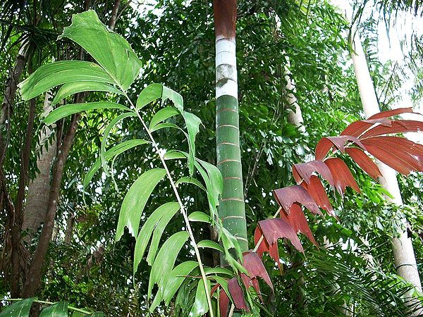 Descrição: É uma espécie menor, com rebentos bastante marginais, com folíolos quase em forma de rabo de peixe que, se bem cultivada, é uma planta ornamental com folhas novas avermelhadas e lindamente coloridas.